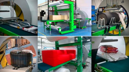 - автоматические и полуавтоматические устройства предварительного оборачивания блока упаковки дополнительным упаковочным материалом, к перечню которого относятся: воздушно-пузырьковая пленка (ВПП, пупырка), полиэтиленовая пленка (ПЭ ПВД и ПНД), вспененные материалы на основе полиэтилена или полипропилена.