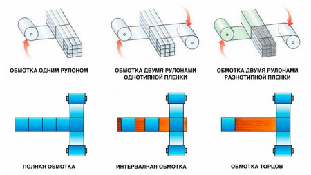 Двухрулонная система обмотки позволяет, при необходимости, одновременно использовать на разных рулонодержателях различные виды упаковочного материала. Это дает возможность индивидуализации упаковки продукции или сокрытия содержимого упаковки от посторонних глаз, что достигается применением окрашенного или брендированного упаковочного материала.