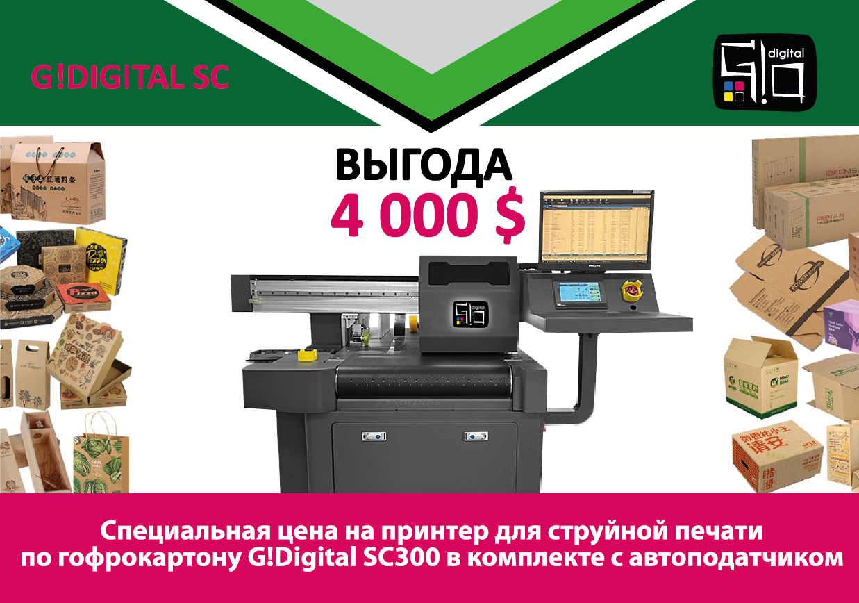 Принтер для струйной печати по гофрокартону G!Digital SC300 в комплекте с автоподатчиком можно приобрести с выгодой 4000$ в ГК «РУССКОМ»!
