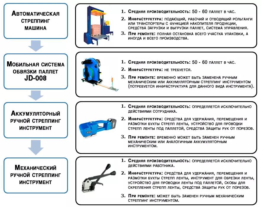 АЛДЖИПАК: мобильные системы обвязки паллет JD-008 упаковка груза в месте комплектации паллеты