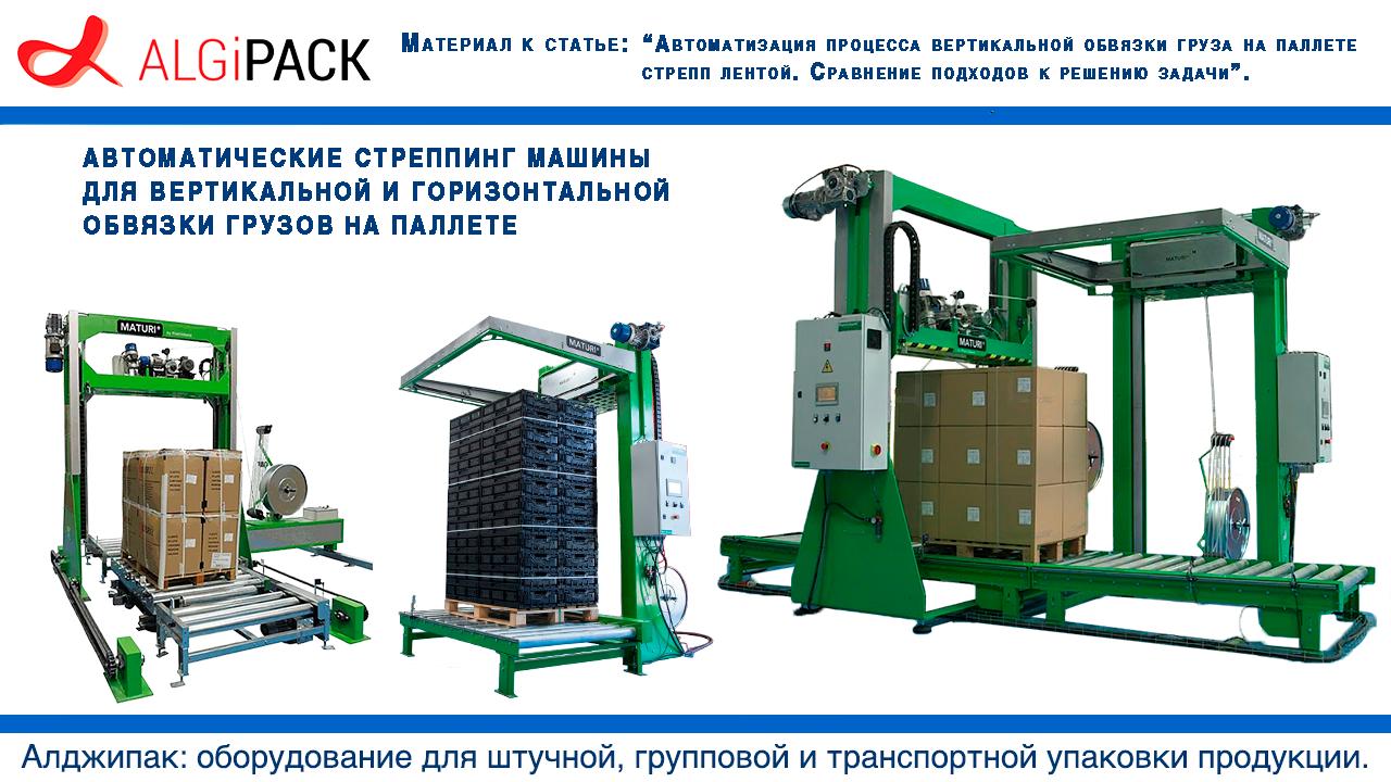 Алджипак: автоматизация процесса вертикальной обвязки груза на паллете полимерной стрепп лентой. Сравнение подходов к решению задачи.