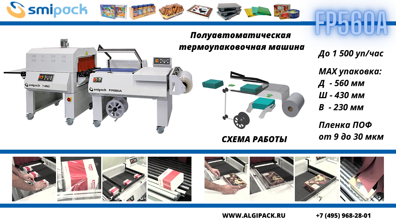 Алджипак: универсальная упаковочная машина SMIPACK FP560A. Упаковка продукции в ПОФ, ПЭ и ВПП на одной машине