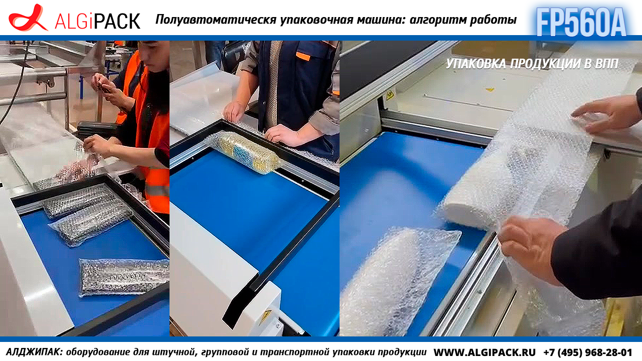 Как мы писали ранее, полуавтоматическая термоупаковочная машина SMIPACK FP560A способна осуществлять упаковку продукции в материал, набирающий популярность в качестве основного упаковочного материала при продаже и пересылке продукции через маркетплейсы. Это – воздушно-пузырьковая пленка или, сокращенно, ВПП.