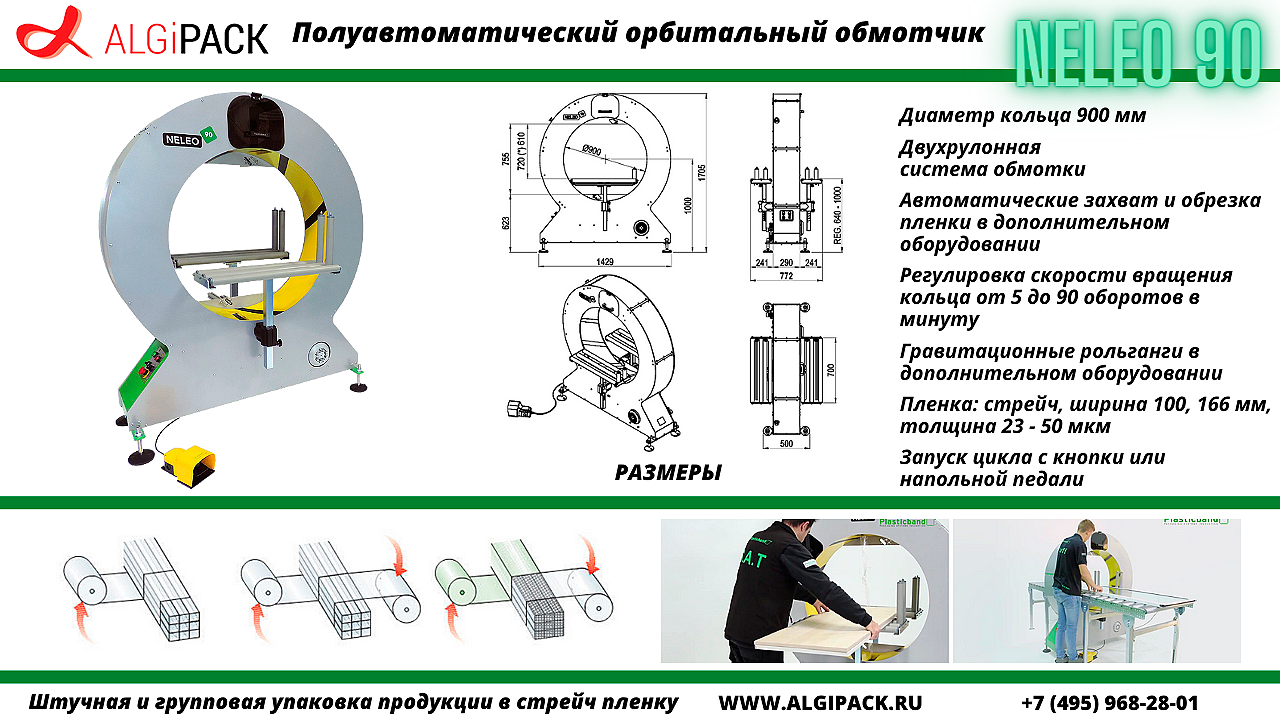 Алджипак: универсальный полуавтоматический орбитальный обмотчик продукции стрейч пленкой модели NELEO 90