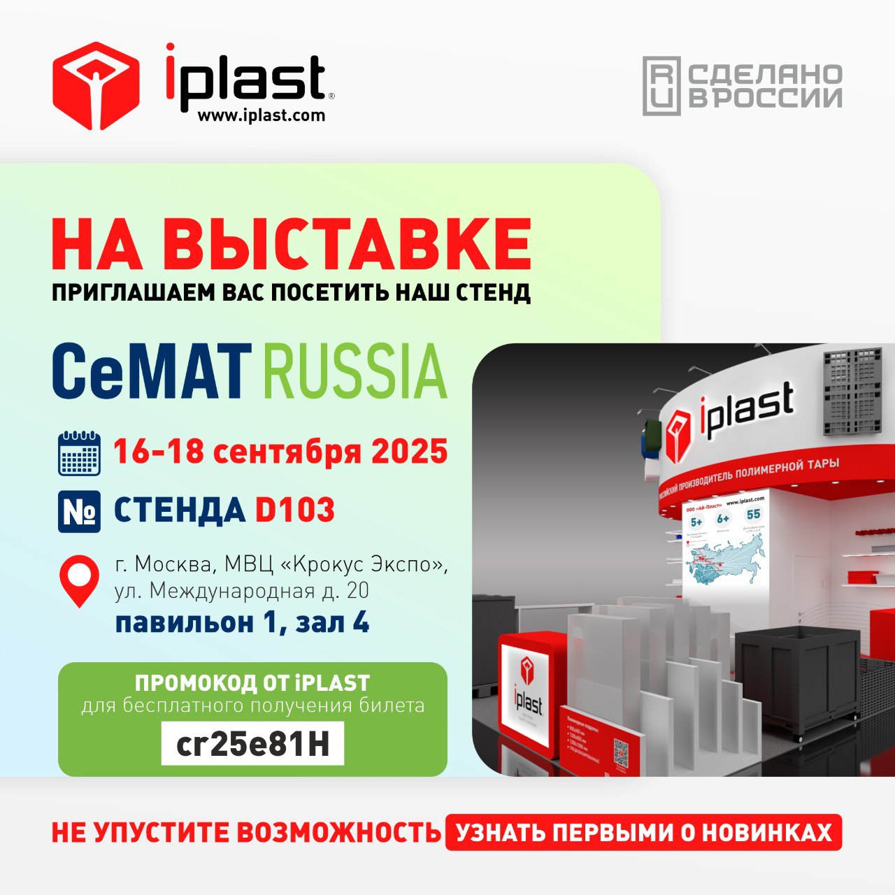 С 16 по 18 сентября компания «Ай-Пласт» примет участие в международной выставке CeMAT Russia 2025 - ключевом событии в области складской логистики и автоматизации.
