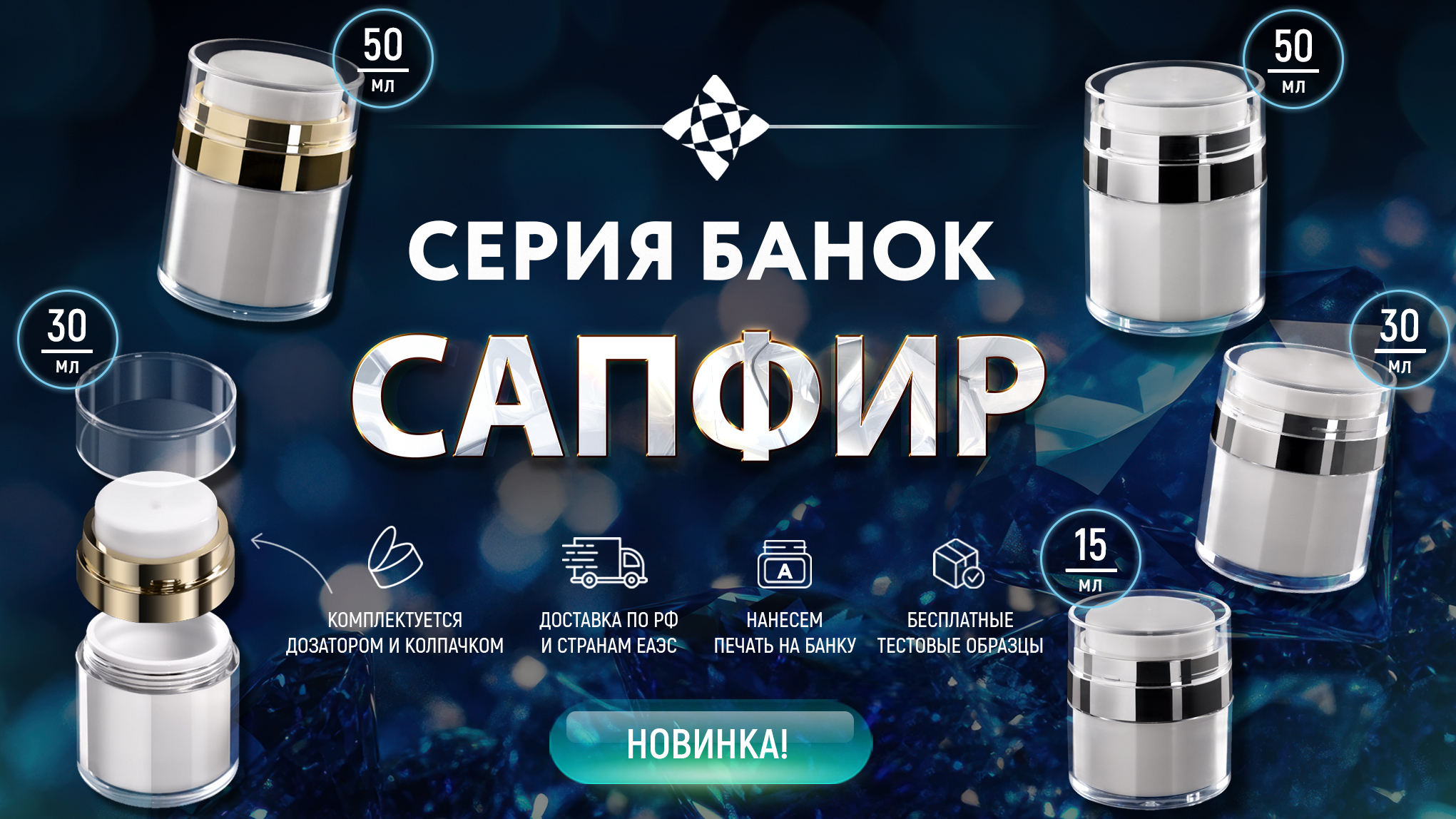 Банка косметическая «Сапфир» с помпой с золотой юбкой на 15 мл, 20 мл, , , 80 мл и 100 мл.