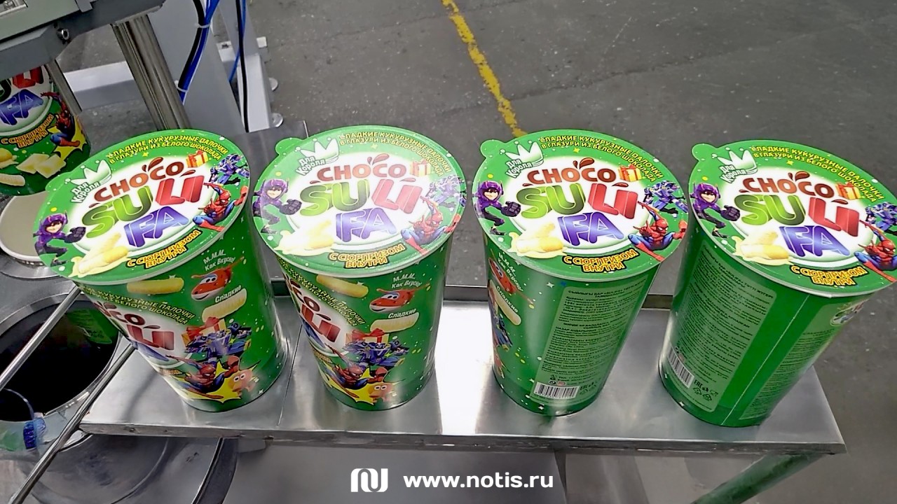 Фасовка кукурузных палочек в бумажные стаканчики: решение НОТИС для заказчика в Алматы