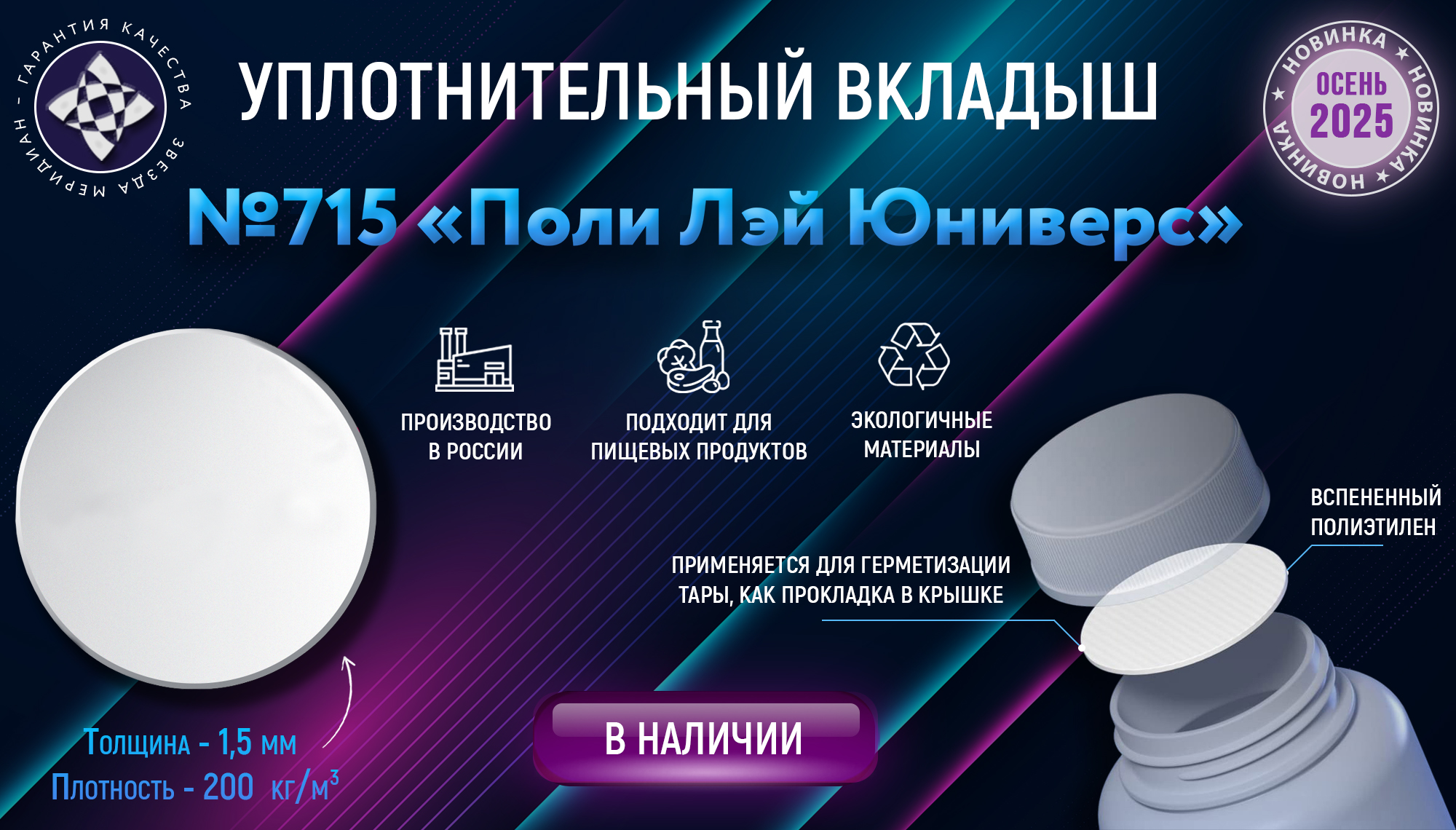 Вкладыши подходят для любых флаконов, банок или бутылок из абсолютно любого материала: металла, пластика, стекла, алюминия и другого. Применяются для герметизации тары, как прокладка в крышке.