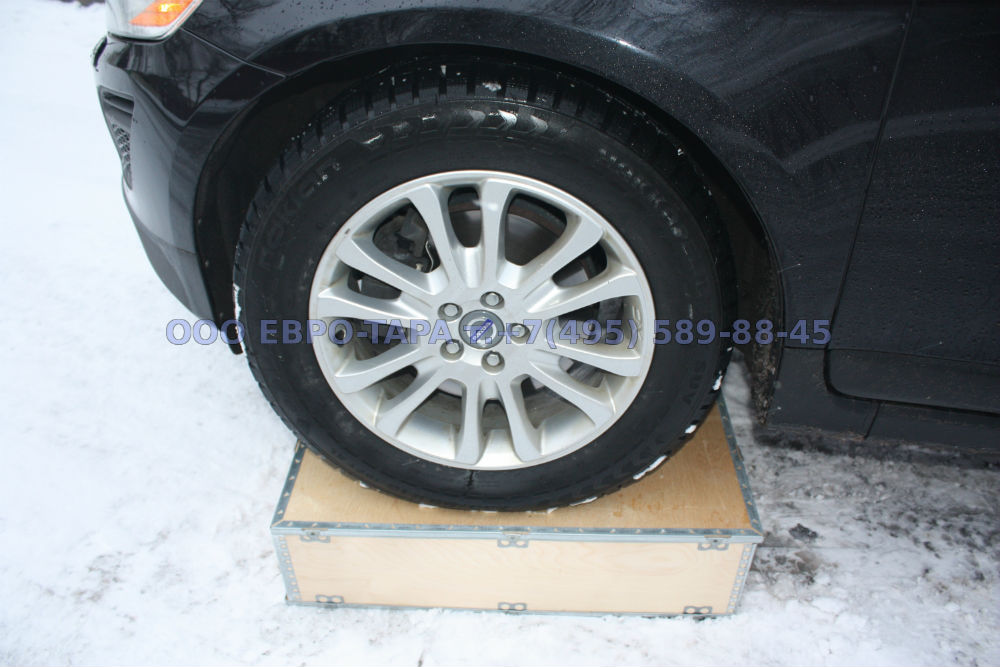 Складной фанерный ящик был установлен на ровную плоскость (асфальтовое покрытие). Колесо автомобиля устанавливалось на середину верхней крышки ящика, путем поднятия машины. Считалось, что тара успешно выдерживает нагрузку, если не наблюдается видимых разрушений в течение 10 и более минут. Следует сказать, что все испытуемые образцы продукции успешно выдержали тест на прочность.