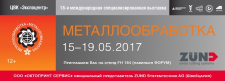 Компания ОКТОПРИНТ СЕРВИС, официальный представитель Zund Systemtechnik AG, приглашает Вас на крупнейшую выставку мирового станкостроения и современных технологий металлообработки. Крупнейший в России проект в области технологий обработки материалов, отражает все мировые тенденции развития отрасли. Выставка объединяет крупнейших производителей и поставщиков металлообрабатывающей продукции со всего мира.