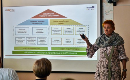 — На данный момент на территории России успешно работают девять станций смешений офсетных красок компании хубергруп. И объемы производимых смесевых красок растут с каждым годом. Технологи компании – Любовь Баюшкина и Елена Лавлинская – рассказали о роли смесевой краски в печати, возможностях наших станций. На семинаре было еще раз анонсировано начало производства компанией hubergroup , закрепляющихся оксидативным способом.