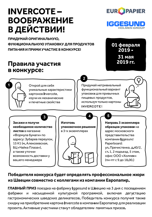 Европапир в партнерстве с компанией Iggesund организует конкурс на лучшую идею пищевой упаковки, в которой максимально будут использованы преимущества картонов Invercote.