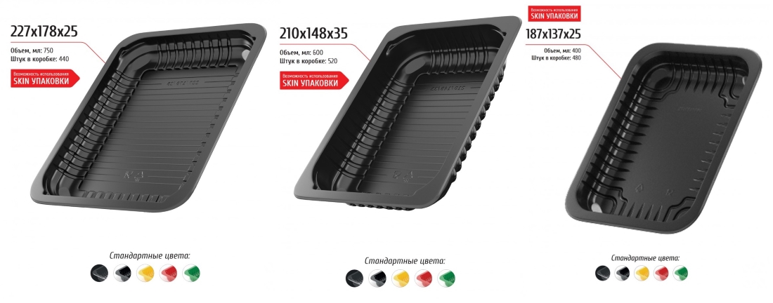 В ассортименте компании представлены лотки для любых условий хранения: морозостойкие (до -18°С) и для продуктов глубокой заморозки (до -40°С), а также для упаковки продуктов в модифицированную газовую среду.