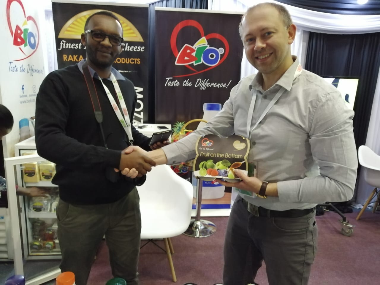 На фото – представитель компании BIO Foods – производителя молочных продуктов премиум класса из Кении. BIO Foods является партнёром фабрики уже порядка 2 лет. Именно гладкие платинки фабрики «Милк» были выбраны для 2 линеек йогуртов: «Fruits on the bottom» и «Greek style yogurt».