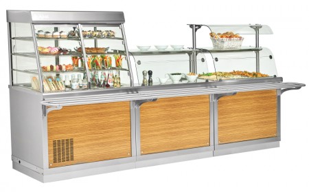- линии раздачи «Hot-Line». Особенностью линии являются съемные панели. На выбор заказчика представлены 5 вариантов самобытного дизайна панелей, способных удовлетворить любые запросы клиентов: нержавеющая сталь (по умолчанию), дуб, орех, вишня, красное золото. Модули данной серии олицетворяют собой сочетание премиального качества, продуманной до мелочей эргономики и оптимальной цены.