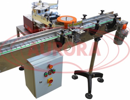 Непосредственно наклеивание этикетки реализуется универсальным аппликатором AURO-500C. Его работа синхронизирована с обкатчиком, который сразу после нанесения разглаживает лейбл, плотно распределяя его по поверхности тары. Для фиксации легкой, мелкой и другой неустойчивой тары установлена дополнительная прижимная пластина. Машина укомплектована датировщиком для проставления даты, номера партии и других данных. При появлении каждой новой этикетки срабатывает оптический датчик, что исключает работу устройства при отсутствии тары или лейбла на упаковке.
