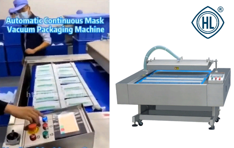 - автоматическая вакуум упаковочная машина конвейерного типа . Данная машина обладает всеми параметрами, необходимыми для работы в условиях повышенных производственных нагрузок. Производительность и способ управления легко модифицируются под задачи конкретного клиента путем установки PLC-контроллера и двух вариантов насоса – 100 или 200 200 м³ /час производства Китая или Германии (BUSCH). Вакуумная среда позволяет создать требуемые условия хранения для масок с любыми параметрами (в т.ч. стерильных, хирургических и т.п.)