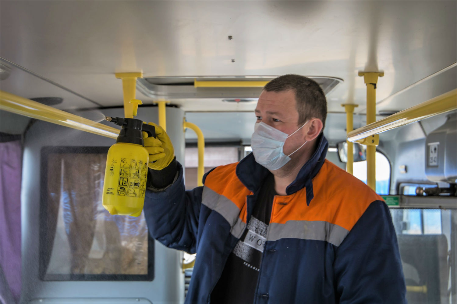 - Организована перевозка работников ОАО «СТГ» служебными автобусами, салоны которых тщательно убираются и обрабатываются дезинфицирующими средствами, перед посадкой в автобус проверяется чистота салона и выдаются одноразовые маски.