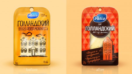 «Главной задачей проекта был редизайн упаковок желтых сыров Valiо в рамках One Valio Design (графическая концепция c круглым бренд-блоком, объединяющая все продукты Valio). Нам нужно было сделать дизайн более ярким, заметным, современным и сформировать логоблок Valio на полке. Упаковка в сырах – важнейшее средство коммуникации с потребителем, поэтому мы должны быть лучшими».