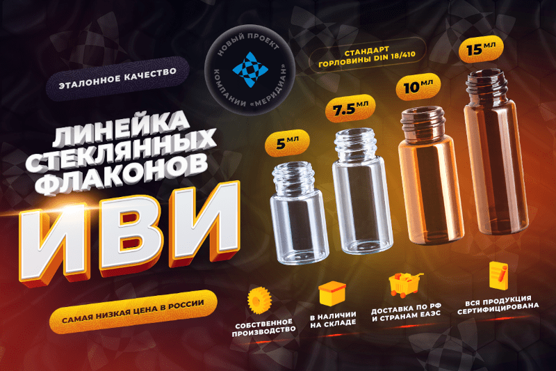 При изготовлении флаконов используется стеклотрубка высшего качества из боросиликатного стекла 1-го гидролитического класса. Благодаря чему все флаконы из серии «Иви» имеют ровные края и гладкую горловину стандарта DIN 18/410.