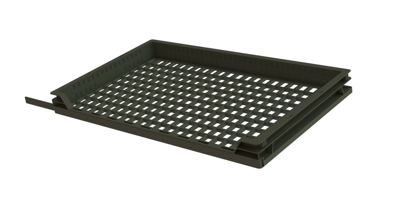 Кроме размера отличаются вариантами исполнения дна и стенок: они могут быть как сплошные, так и перфорированные. Также есть вариант : у него отсутствует один борт по длинной стороне для удобства перекладывания хлебобулочных изделий. Причем, для сохранения прочности конструкции контейнер усилен металлической вставкой.