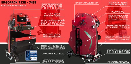 - Оператору не нужно нагибаться или приседать, вручную проталкивая обвязочную ленту между паллетой и полом, а также обегать вокруг паллеты, перебрасывая ленту над грузом сверху;