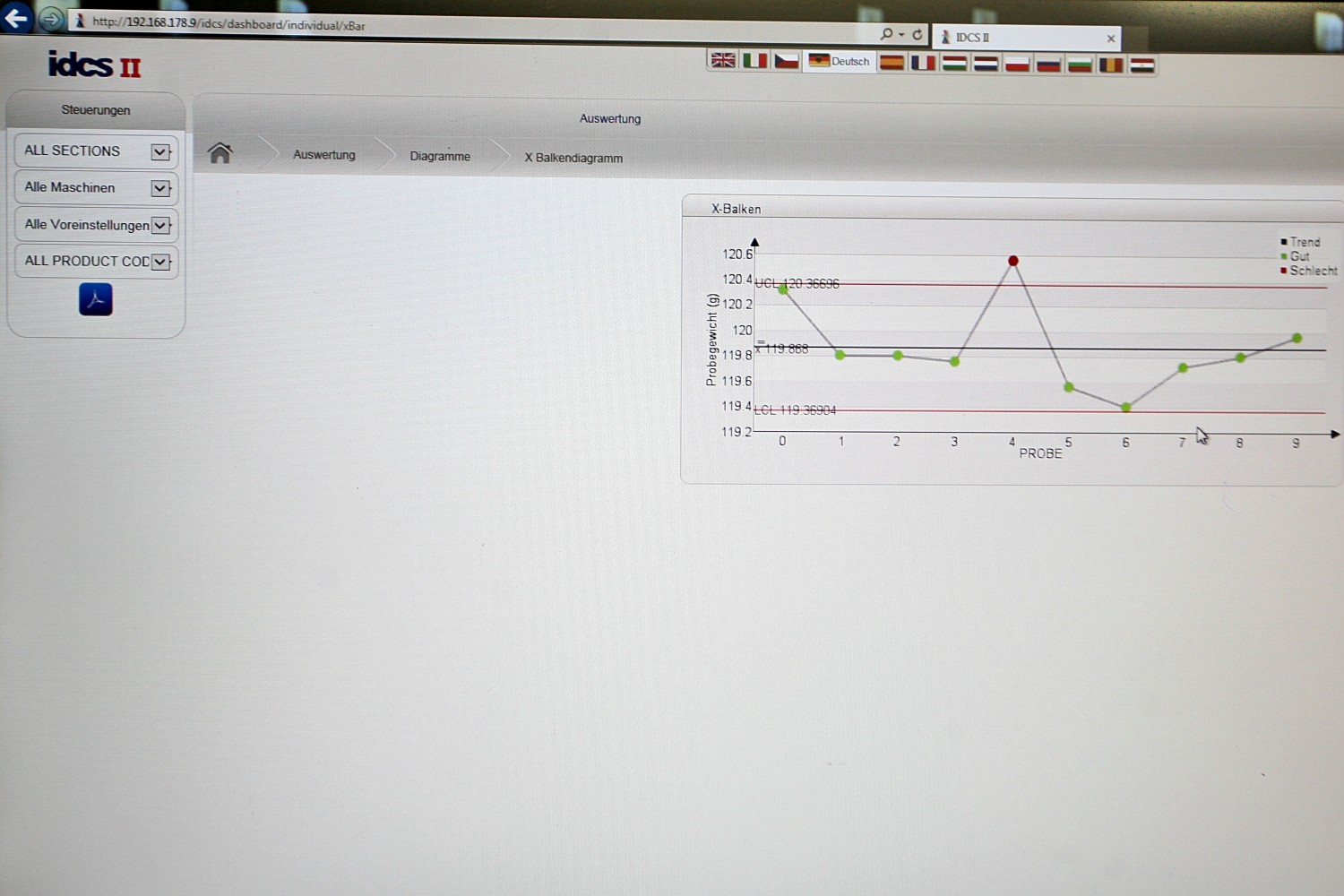 Не менее важным является и то, что в контрольные весы встроено программное обеспечение с веб-интерфейсом Ishida IDCS II (Система обработки данных Ishida), предназначенное для сбора разнообразных данных о каждом отдельном пакете, которые содержат ценную информацию, помогающую специалистам компании Johanning Snack повысить производительность. ПО IDCS может выполнять анализ в режиме реального времени на основании партий продуктов, смен, операторов, конкретного продукта, машин или линий.