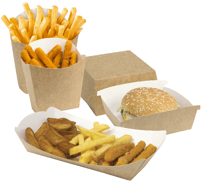 - Большое разнообразие упаковки fast food от лотков для гамбургеров, упаковки для картофеля фри до упаковки для снэков.