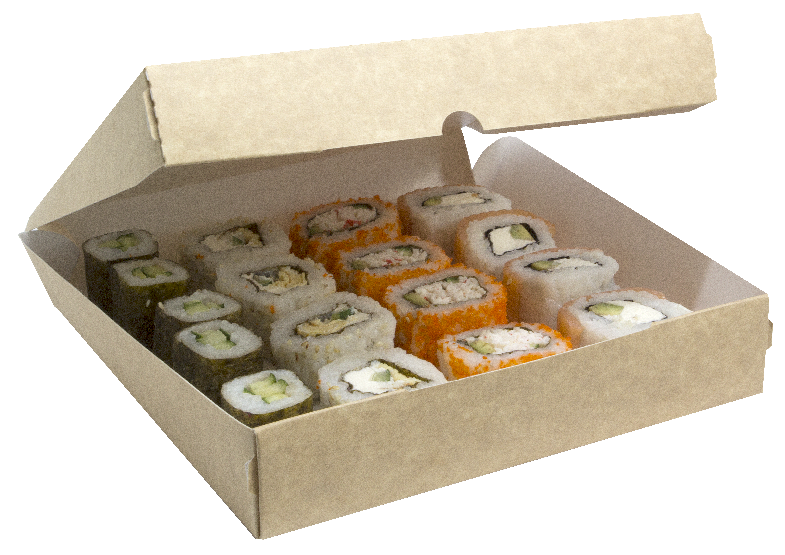 Бумажная упаковка экологична, влагостойка, удобна при транспортировке, подходит для разогрева в микроволновой печи. Такая упаковка обладает хорошими теплосберегающими свойствами, материал упаковки не влияет на вкусовые качества еды, упаковка не нагревается, не протекает.