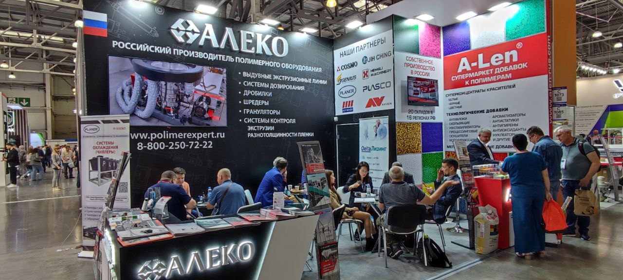 - «Оборудование». Специалисты «Алеко» консультировали посетителей по вопросам: переработки полимеров, производства полимерного оборудования, флексографических печатных машин, пакетоделательных машин и оборудования для производства мягкой полипропиленовой упаковки.