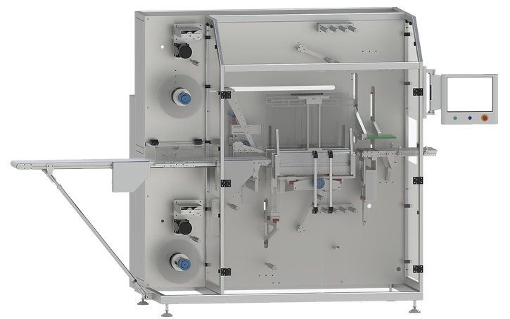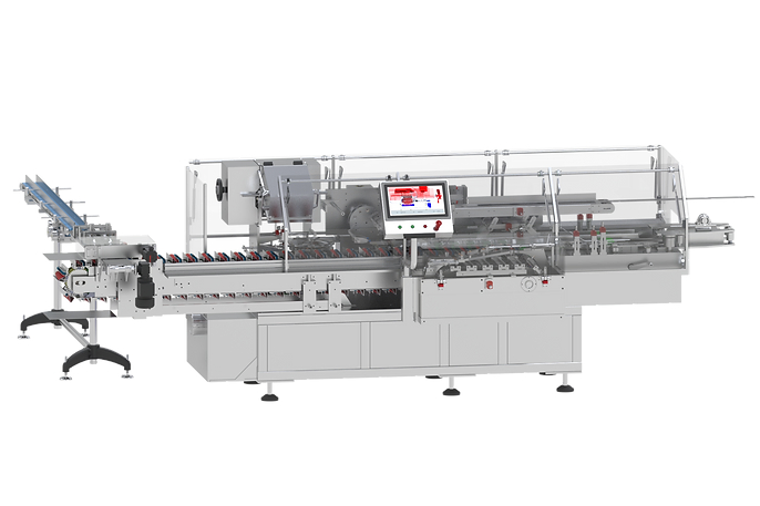 Машина M-OKM-B01 для групповой упаковки в коробки также способна работать с упаковками разного размера.