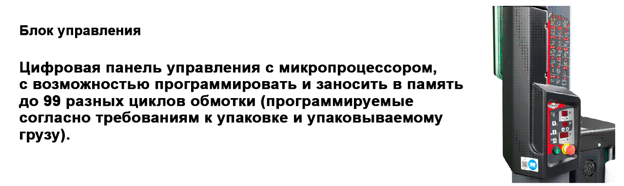 - Возможность использовать стандартную (ширина 500 мм) или увеличенную (ширина 1 000 мм, опционально) упаковочную стрейч пленку.