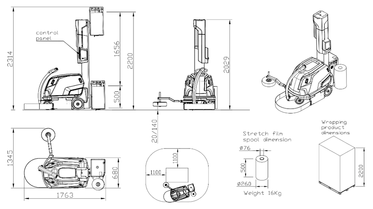 Базовые характеристики робота-паллетообмотчика MOTION 2.0