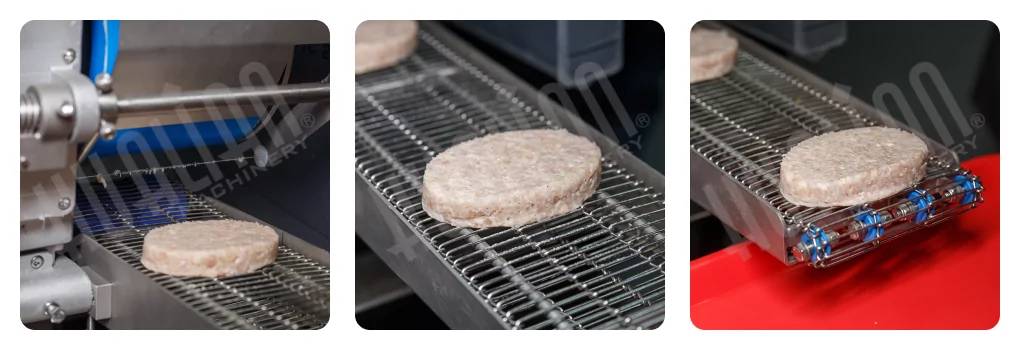 Как и другие машины, Hualian Machinery Russia протестировали оборудование для производства котлет в своем демонстрационном зале и пригласили на демонстрацию тест клиента. На запуске загрузили в аппарат куриный фарш и настроили толщину и размер будущих изделий. Заказчик остался доволен тестовым запуском. Результат работы автомата соответствует его промышленным мощностям.