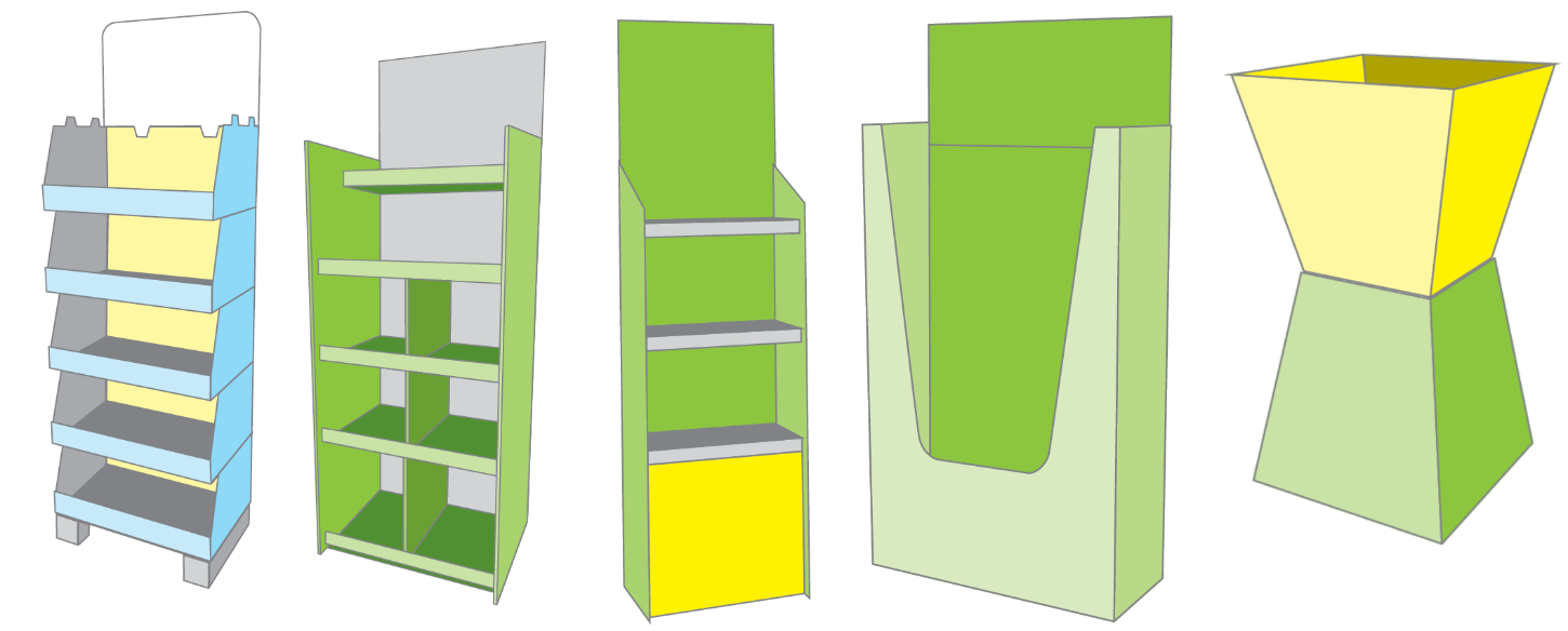 Картонные стойки, Препаки (англ. Pre-pack, предварительно упакованный), Префиллы (англ. – Pre-fill, предварительно заполненный) заполненные товаром еще на складе производителя (реже копакера), которые изготовлены без использования пластика или металла, уже присутствуют на российском рынке рекламной продукции. В зависимости от конструкции имеющиеся решения предназначены для легкой, средней по массе и достаточно тяжелой продукции. Есть и универсальные, достаточно простые конструктивные решения, которые подойдут для продукции любой массы, а их устойчивость будет определяться характеристиками используемого гофрокартона: толщиной, прочностью и количеством слоев. Безусловно, отказ от дополнительных конструктивных элементов сужает вариации форм препаков, но красочность и привлекательность готового решения могут быть абсолютно любыми благодаря многоцветной печати.