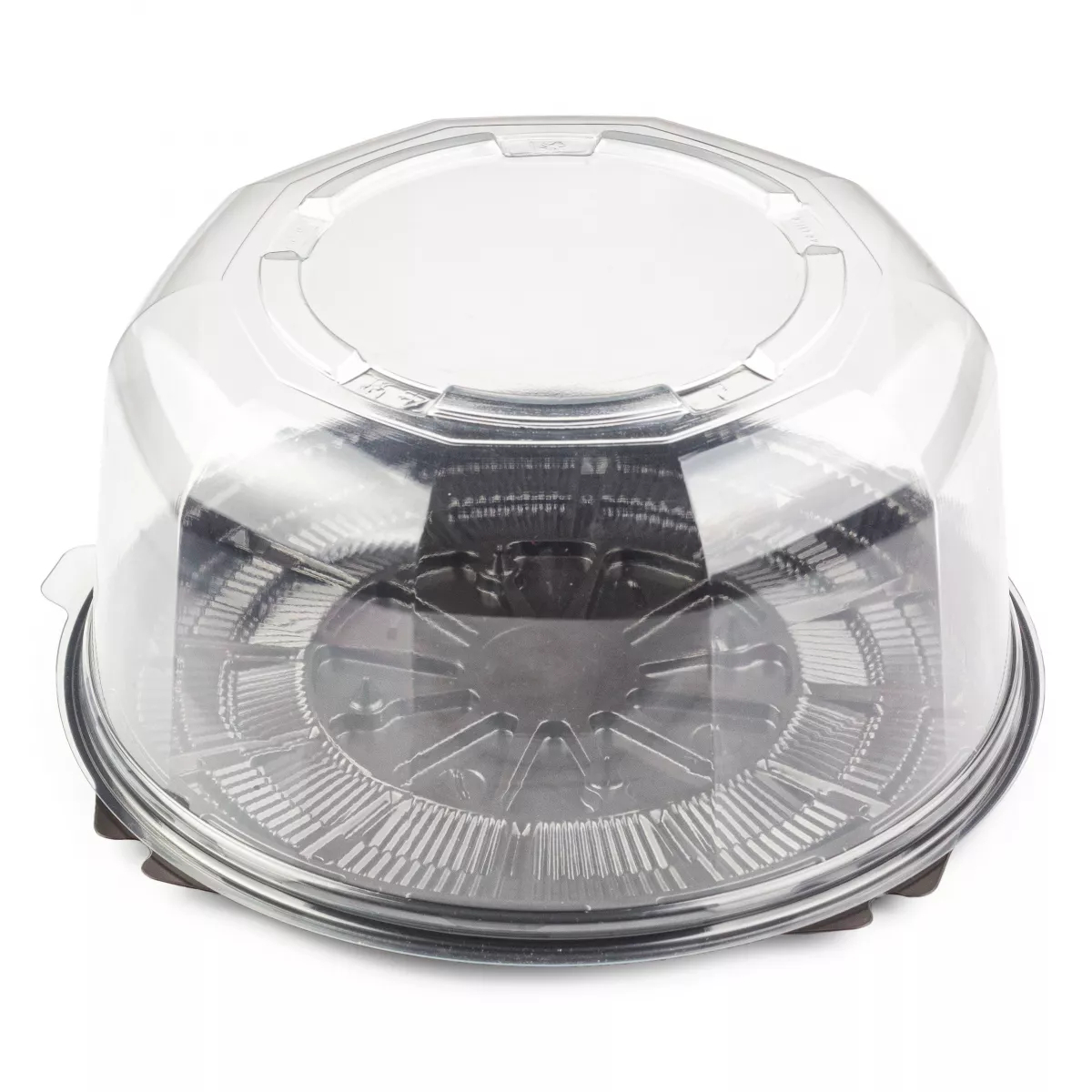 Компания Юпласт представляет круглую безрёберную упаковку для тортов, пирогов и десертов. Комплект, как правило, используют для изделий весом до 800 г.