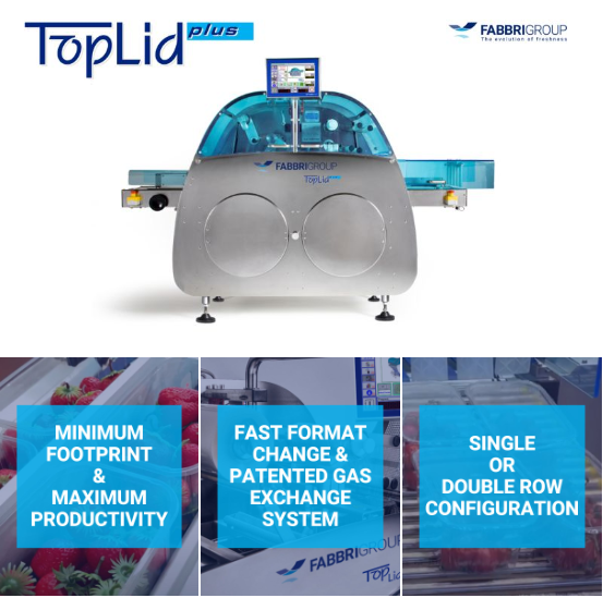 TopLidplus is the advanced version launched by Fabbri Group of the traditional and popular “TopLid” automatic tray-sealer, with major reliability and efficiency.