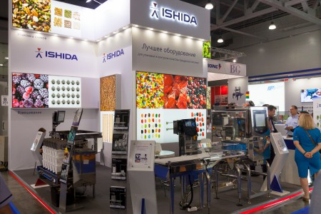 А на стенде Ishida в этот раз демонстрировались комбинационный (мультиголовочный) дозатор серии SE, установка рентгеновского контроля упаковок, контрольные весы DACS-G (позволяющие проверять до 330 упаковочных единиц в минуту), весовой комбинационный дозатор линейного построения серии FF. Всю эту технику мы уже видели, но еще раз ее посмотреть определённо стоило.