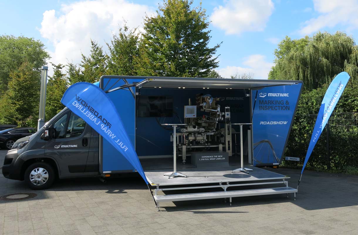 MULTIVAC Group сообщила о том, что компания MULTIVAC Marking & Inspection GmbH & Co. KG успешно провела рекламное турне по Германии, Австрии и Швейцарии, чтобы предоставлять клиентам исчерпывающую и персонализированную информацию об инновационных решениях компании в области этикетирования. В пути по трём странам с начала сентября 2020 г. до конца марта 2021 г. находился 3,5-тонный грузовик, оборудованный конвейерным этикетировщиком L 310 для кругового этикетирования (Full Wrap Labelling), а также оснащённый брошюрами, упаковками с образцами, подходящими этикеточными материалами и современной презентационной техникой.