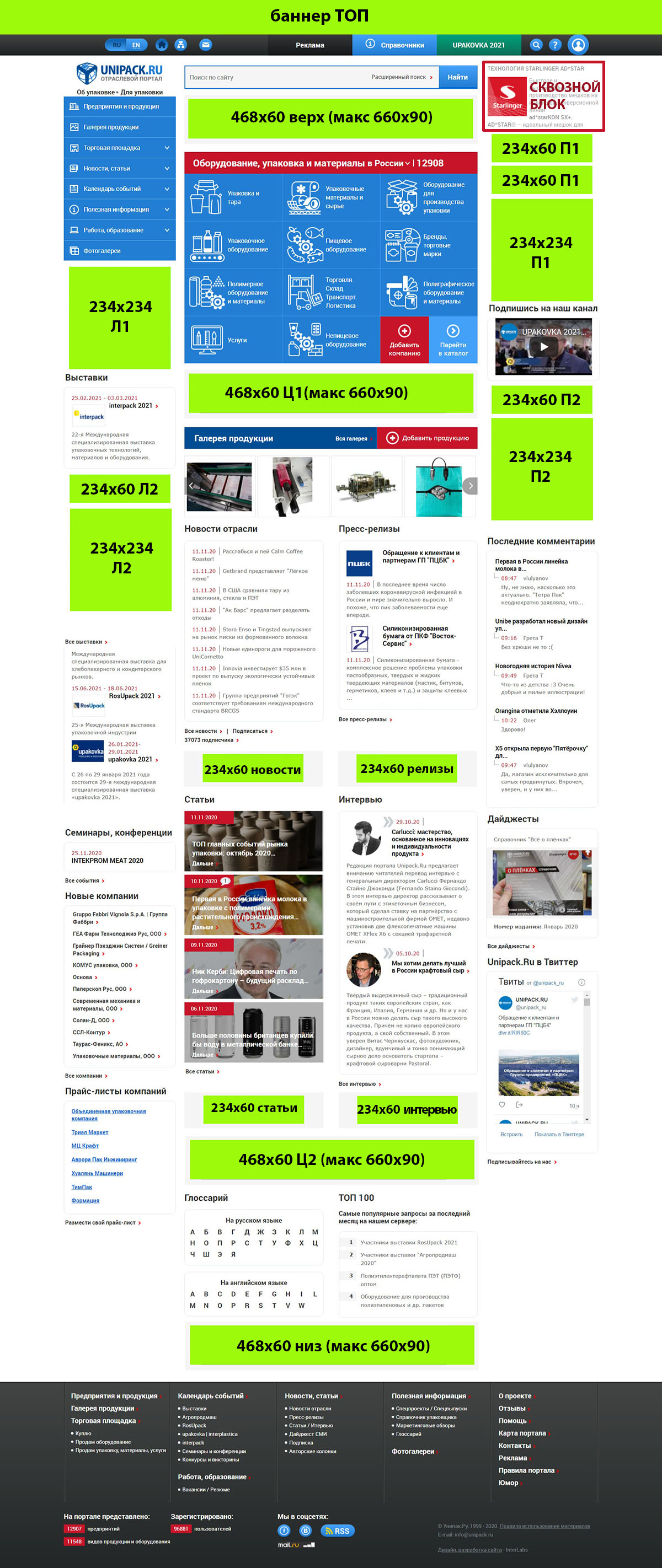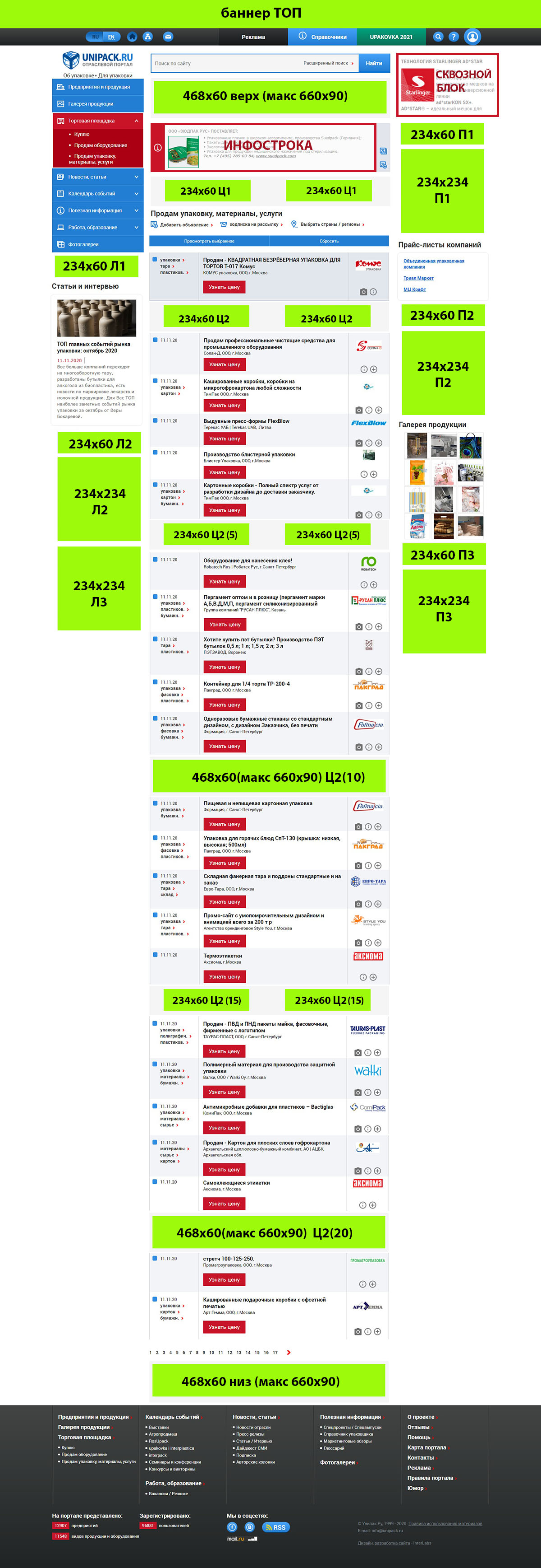 Главная русская страница Unipack.Ru схема размещения |