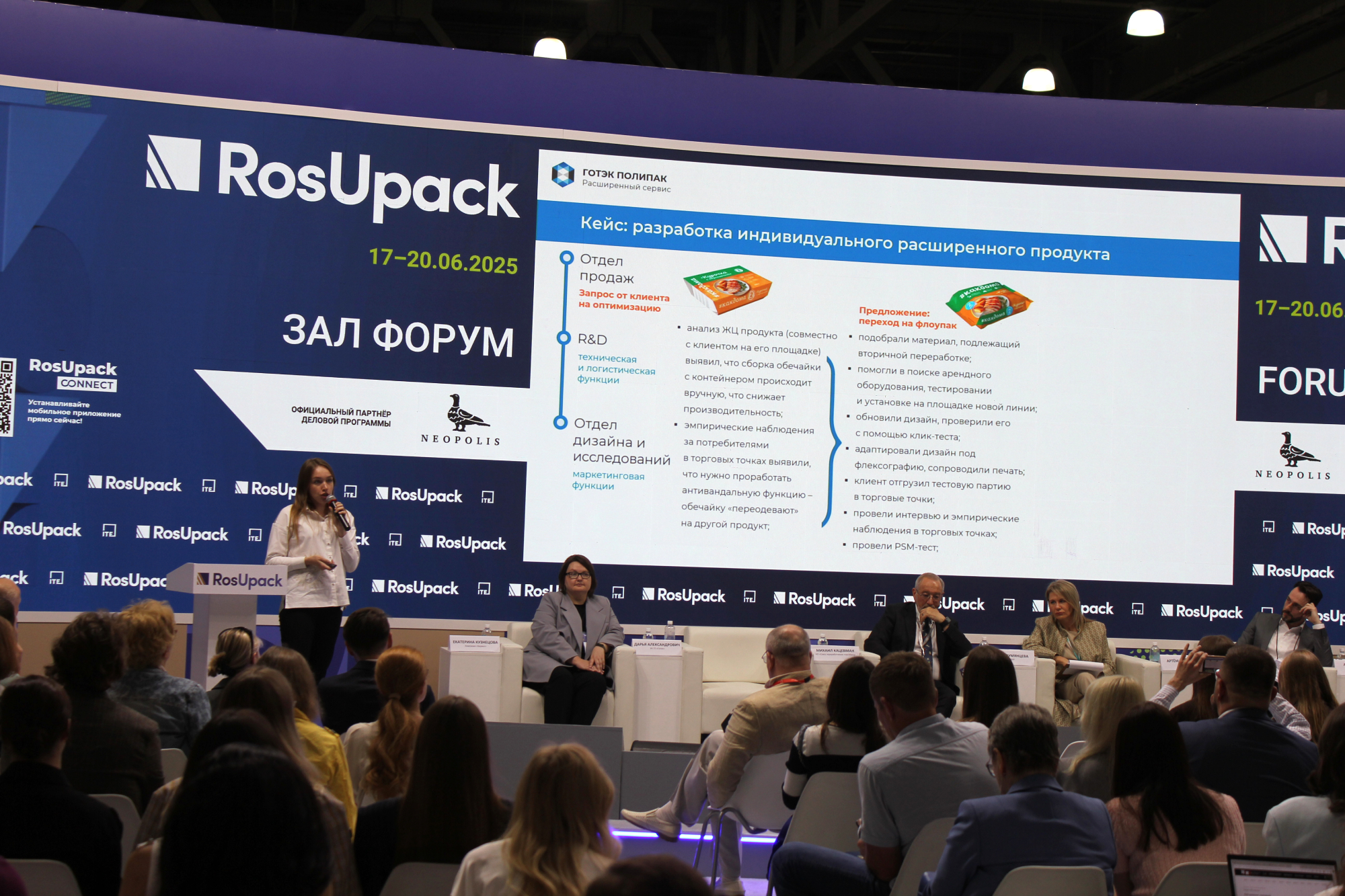 В рамках Форума производителей и потребителей упаковки RosUpack прошла пленарная сессия, посвященная трендам полимерной упаковки. Модератором мероприятия выступила Юлия Румянцева, директор Дивизиона «Жесткая упаковка» СИБУР. На сессии эксперты обсудили главные тренды и векторы развития полимерной упаковки, гибкую и жесткую упаковку, барьерную пленку, утилизацию, а также сотрудничество производителя и клиента.