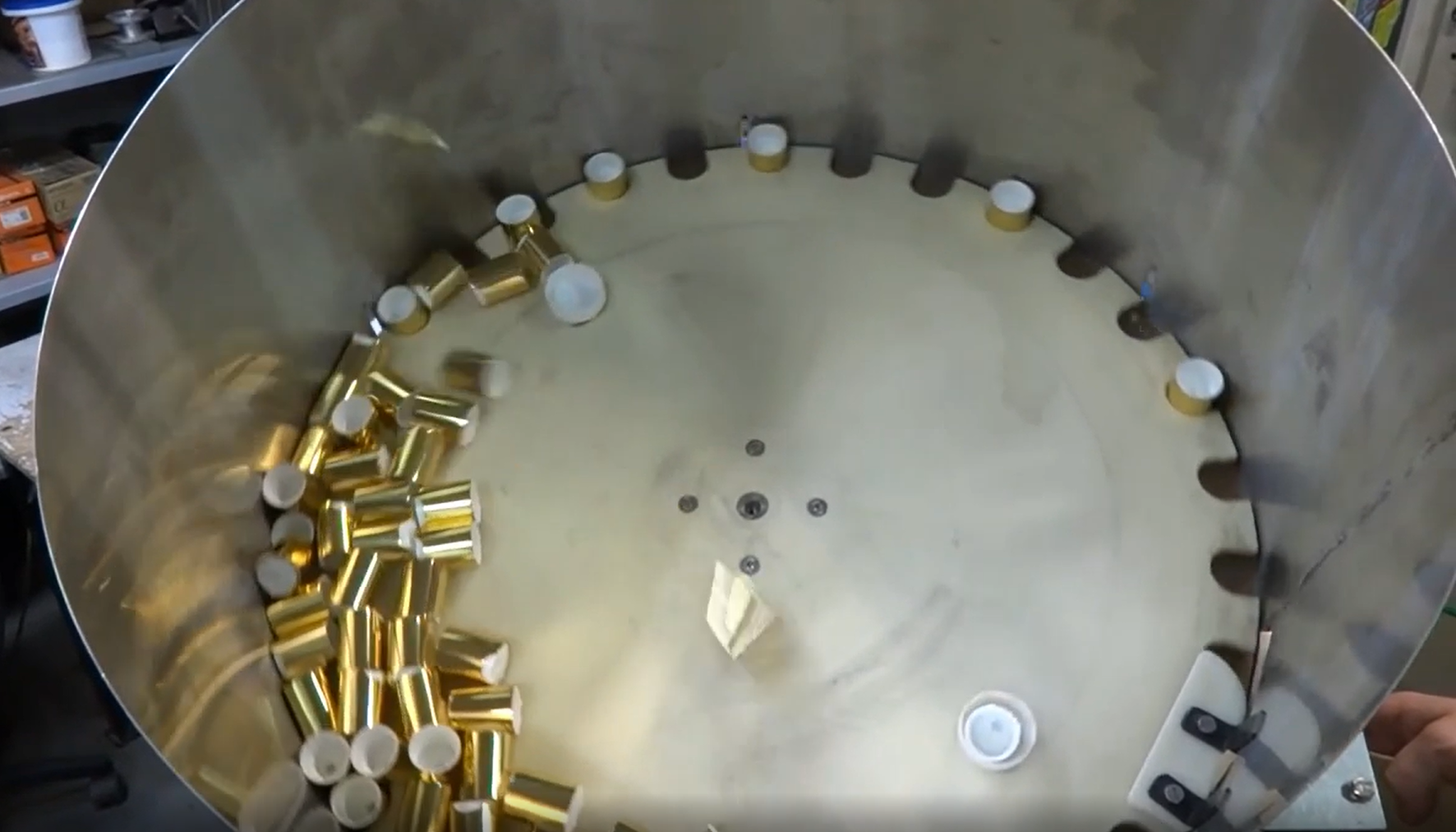 Под действием вибрации от электромагнитного привода пробки перемещаются по спиральному лотку. Наиболее универсальные. Единственный недостаток — повышенный шум от работы генератора вибраций.