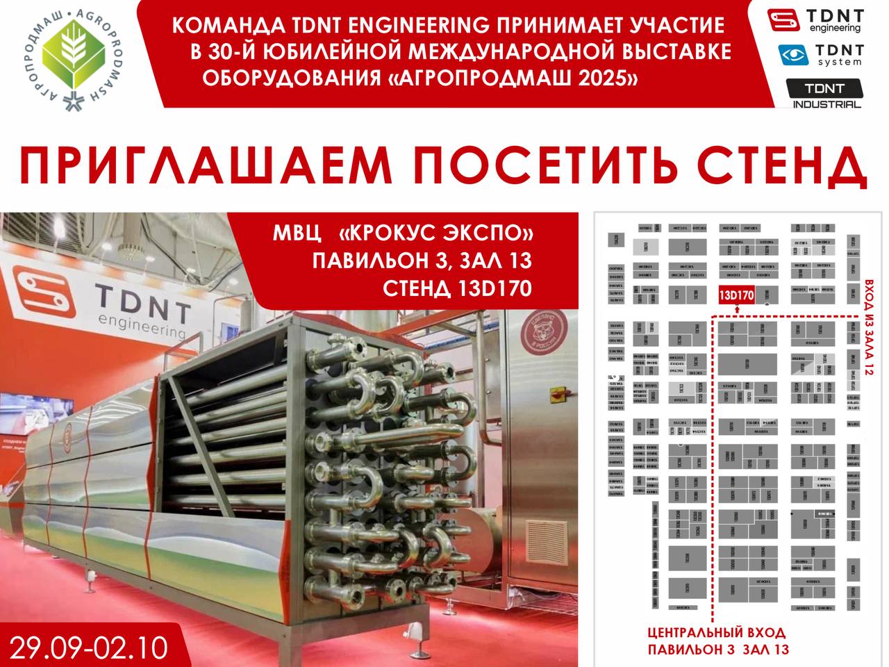 Российская инжиниринговая компания TDNT Engineering (ООО «ТДНТ ИНЖИНИРИНГ») сообщила о своем участии в международной выставке «Агрпродмаш-2025».