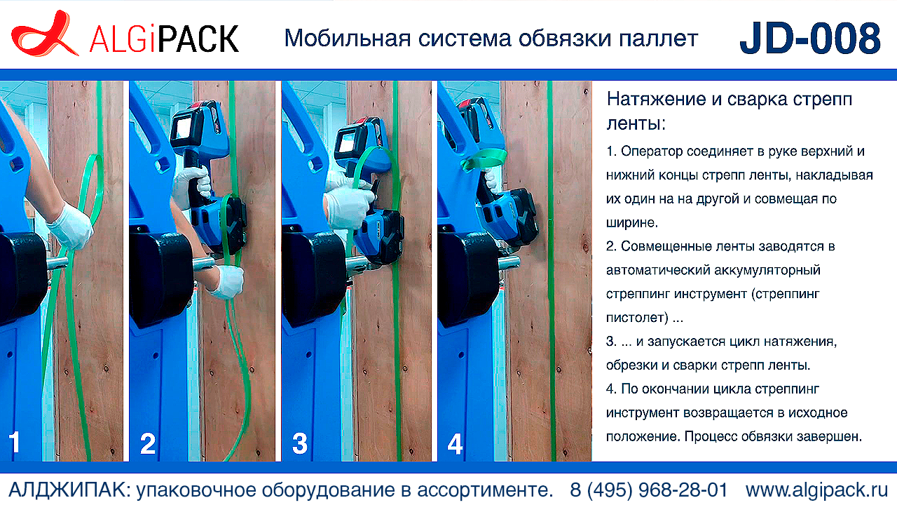 АЛДЖИПАК: процессы, обеспечиваемые конструкцией мобильной стреппинг машиной JD-008