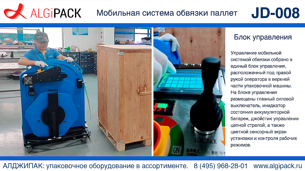 В этом календарном году стала доступна модификация JD-008 PRO, оснащенная управляемым приводом для быстрого перемещения системы и оператора к месту упаковки груза.