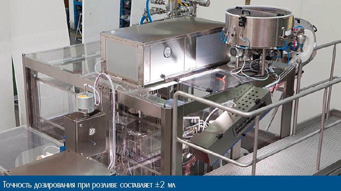 Процесс розлива полностью локализован и автоматизирован от производства бутылок из преформ до упаковки готовой продукции в оптовые партии. Замкнутый непрерывный процесс обеспечивает асептические условия. Контакт персонала с продукцией сведен к минимуму.