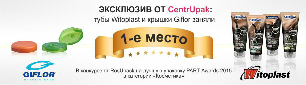 Компания CentrUpak очередной раз участвовала в выставке RosUpack. В этом году на выставке эксклюзив от CentrUpak - крышки Giflor и тубы Witoplast заняли 1 место в конкурсе PART Awards 2015 за лучшую упаковку в категории Косметика.