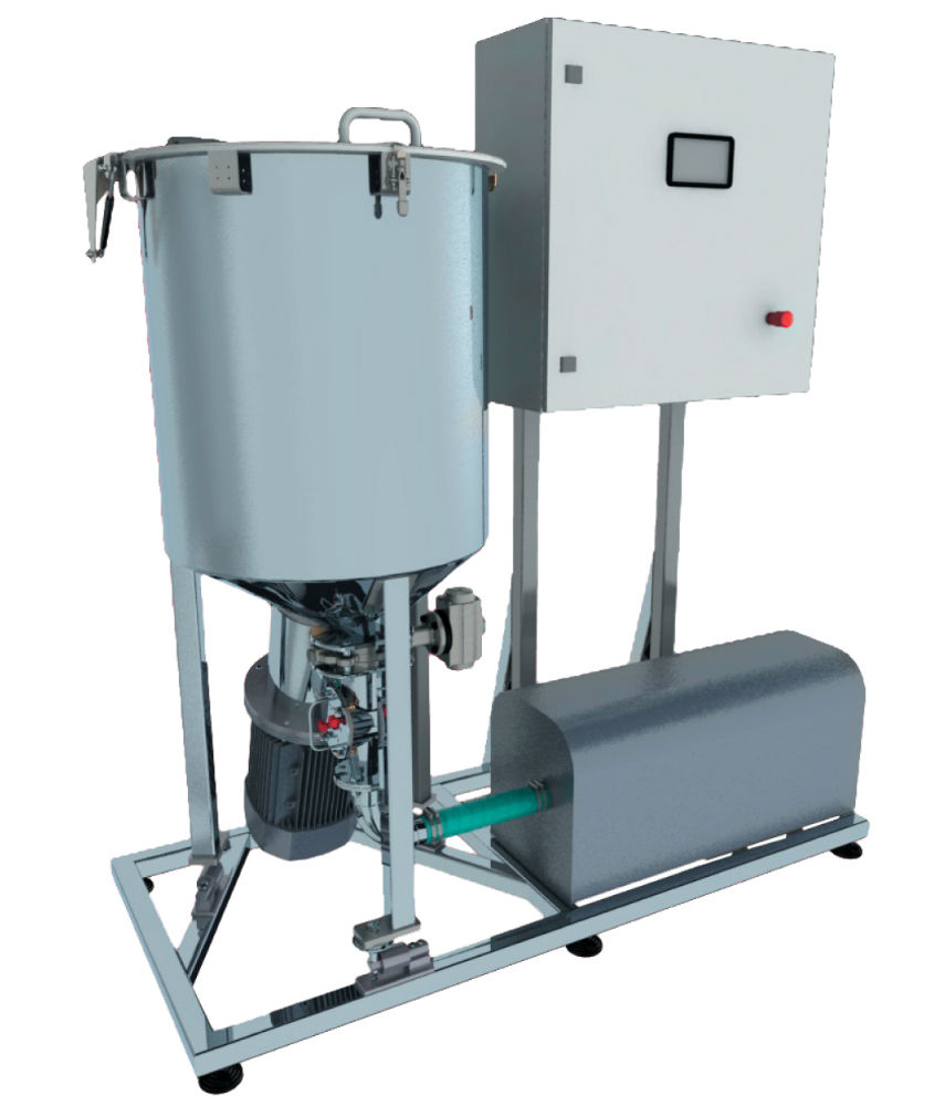 В базовую комплектацию оборудования входит бак, объемом 300 л, изготовленный из нержавеющей стали, электродвигатель измельчителя с номинальной частотой вращения 300 об/мин, управляемая пневмозадвижка и магнитный сепаратор на выпускном патрубке бака измельчителя, лепестковые ножки, а также гомогенизатор с мощностью привода 11 кВт.