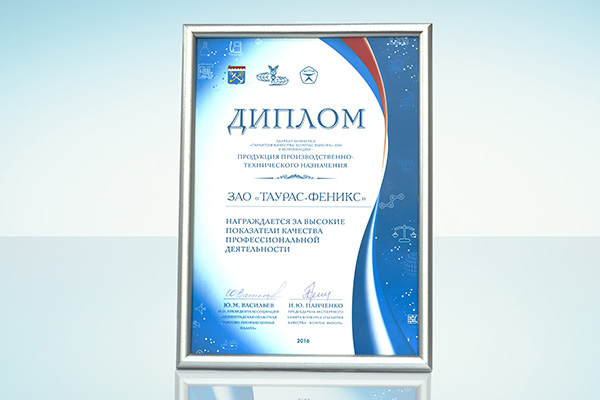ТАУРАС-ФЕНИКС победил в региональном этапе и стал Лауреатом первого этапа общероссийского конкурса «Гарантия качества - компас выбора 2016» в номинации «Продукция производственно-технического назначения».