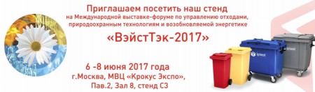 Приглашаем посетить стенд компании «Ай-Пласт» С3 в Павильоне 2, Зале 8 МВЦ «Крокус Экспо», г. Москва, на Международной выставке по управлению отходами, природоохранным технологиям и возобновляемой энергетике «ВэйстТэк-2017».